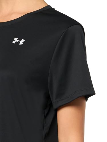Under Armour Women's Velocity Solid Short Sleeve Crew Neck T Shirt, (001) Black / / Metallic Silver, Large