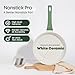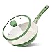 - Non-Toxic Ceramic Coating:free of PFOS and PFOA. Our cookware ensures that your daily cooking is safer and will not produce harmful substances even if it is overheated, providing you and your family with a healthier cooking environment., Induction Compatibility:suitable for all stoves, various natural gas, electric furnaces, ceramics, glass, halogen and induction electric furnaces. The induction extension design and high magnetic conductive stainless steel base at the bottom of the frying pan can be heated faster and heated more evenly., Ergonomic Handle: The heat-resistant handle of the fried egg pan stays cool, suits all hand sizes and is designed for left-hand and right-hand users. Its green color matches the frying pan seamlessly, bringing modern elegance with ergonomic comfort handles that are very firm and won't loosen., Clean & Durable: The ceramic wok with lid is smooth and super non-stick. Cleaning takes only a few seconds as it only requires a tissue or rinse with water, and a dishwasher can also be used, and a scratch-resistant ceramic coating will allow the pan to last longer., Service & Warranty: If you receive a defective or damaged frying pan by shipping, please feel free to contact us and we will resolve your concerns within 24 hours and guarantee that all cooking tools will receive a 100% refund or new alternative, we offer a 6-month money-back guarantee and replacement.