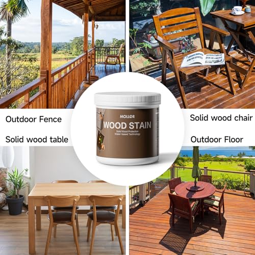 - Wood Stain & Sealer in One: This walnut wood stain eliminates the need for separate primer and top coat— it’s all built right in! It deeply penetrates to nourish wood from within while forming a sealed protective film on the surface, boosting hardness to resist everyday scuffs. Perfect for DIYers to restore a finish for wood with zero hassle., Non-Toxic, Low Odor & Water-Based: Safe for Every Space! Our water based wood stain is non-toxic and ultra-low in VOCs (thanks to our premium emulsion formula)—so you can use it indoors (think: kitchen cabinets, bedroom furniture) or outdoors (deck, fences) with zero harsh fumes. No more holding your breath or limiting where you work—apply comfortably anywhere, no unpleasant odors to stress over!, Excellent Water-Resistant & Sealing Properties: Even in extreme outdoor weather (like heavy rain, frost, or UV exposure), our wood stain provides outstanding protection for wood—preventing warping, rotting, and discoloration. This makes it highly suitable for outdoor wooden floors, wooden fences, wooden garden furniture, and more., Long-Lasting & Long-wearing : Backed by 32 years of experience, our wood stain sealer delivers a tough, long-lasting finish with excellent adhesion. It provides vibrant, full coverage with minimal prep, ensuring a reliable surface that withstands everyday wear and tear., Fast Drying: It achieves surface drying and is ready for normal use in just 4 hours, with optimal performance reached in 7 days. it’s easy to use, allowing you to effortlessly create your ideal wooden items., WARM TIP: Apply the wood stain with a clean cloth or wodod stain brush along the grain. The longer the wait, the deeper/richer the colorFor a deeper color, apply additional layers.