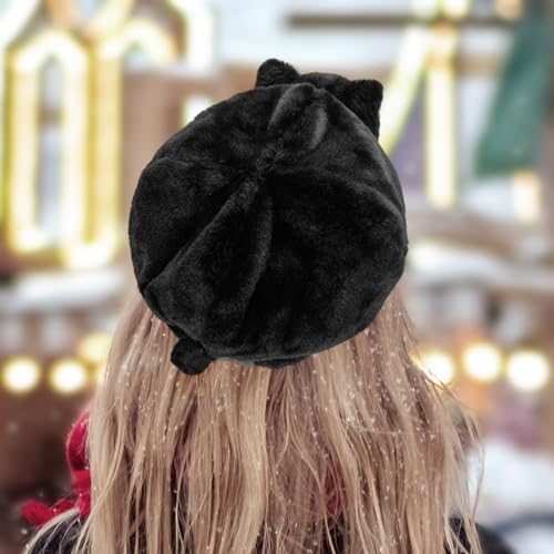 Cantustime Funny Cat Beret - Cute Winter Animal Hats Kawaii Kitty Hat - Easter Valentines Day Birthday Christmas Novelty Fun Gag Unique Gifts for Women Kids Mom Ladies Girls Cat Lovers Black
