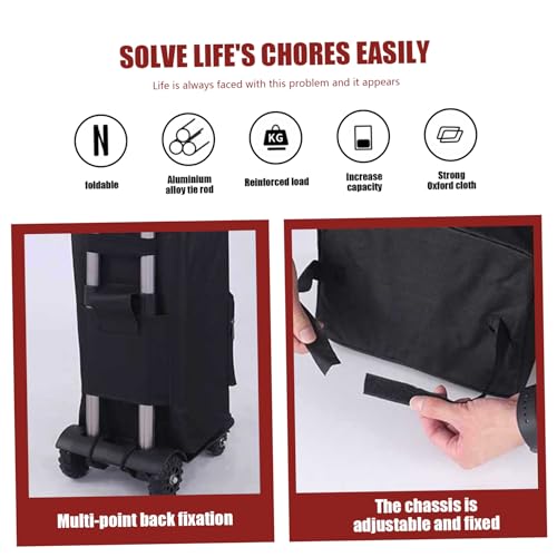 - Quiet & Smooth Rolling: The shopping cart is equipped with wheels that provide a quiet and smooth rolling experience. This ensures that you can move around without causing any disturbance or noise, making it ideal for both indoor and outdoor use., Foldable Shopping Cart with Wheels: This shopping cart is designed with convenience in mind. It features a foldable design, allowing for easy and space saving storage. The wheels make it effortless to maneuver through crowded spaces, making your shopping experience more convenient., Removable Large Capacity Shopping Bag: The shopping cart comes with a removable shopping bag that offers ample storage space. You can easily load and unload your groceries or products, and the bag can be detached for easy cleaning or replacement., Comfortable Handle: The shopping cart features a long handle that can be adjusted from 17.72 to 37.80 inches, allowing you to find the most comfortable height for you. This ergonomic design ensures that you can push or pull the cart without straining your back or shoulders, providing a comfortable shopping experience., Heavy Loading Capacity: With a weight capacity of 77 lbs, this shopping cart can handle heavy loads without compromising its stability. It is designed to withstand the weight of groceries, products, and other items, ensuring that you can transport your purchases with ease.