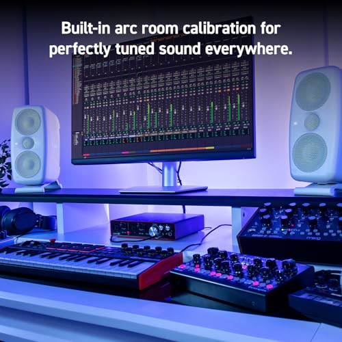 IK Multimedia iLoud MTM MKII White (Pair Plus ARC mic) Compact Studio Monitor with Built-in ARC Room Correction, Speaker Emulation, 100W Power