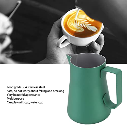 - EASY TO USE: The hawk-shaped spout of the coffee steamer prevents spills. Easy to grab and pour, very easy to use., EXQUISITE CRAFTSMANSHIP:The stainless steel milk frothing cup is well made, looks good and is very easy to clean after use., MULTIFUNCTIONAL DESIGN - Multifunctional milk frother cup, milk cup, water cup, perfect for making coffee, milk, hot chocolate, etc., PROFESSIONAL MILK ART MOUTH: The stainless steel milk frothing cup has a professional latte art mouth, where the cup body is melted into one piece., FOOD FEED 304 STAINLESS STEEL:The foam carafe is made of food grade 304 stainless steel, stain and rust resistant and will not break.