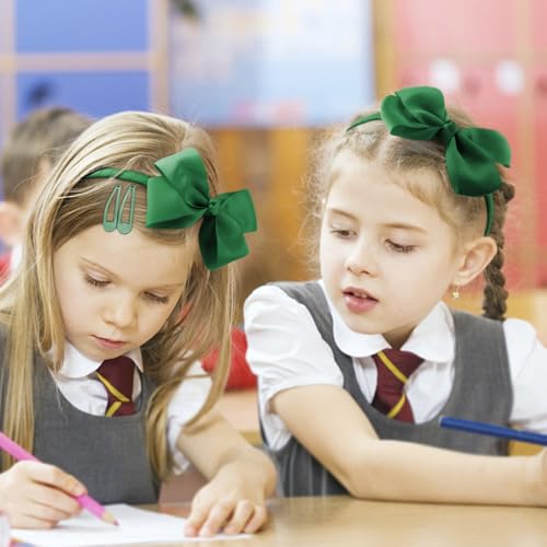 BQUBO Green Bow Hair Accessories Set, 15 Pcs Bows Headbands for Girls Little Girl Velvet Hair Bows Clips Elastic Rubber Band for Girls Toddlers Kids