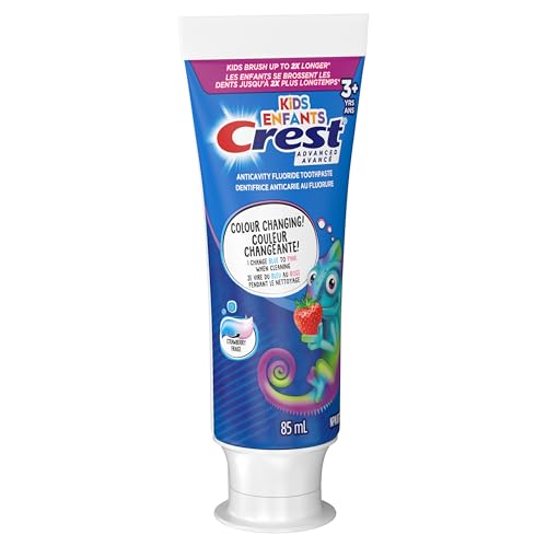 Crest Advanced Kid's Fluoride Toothpaste, Strawberry Flavor, Colour-Changing Anticavity Toothpaste, 85 mL