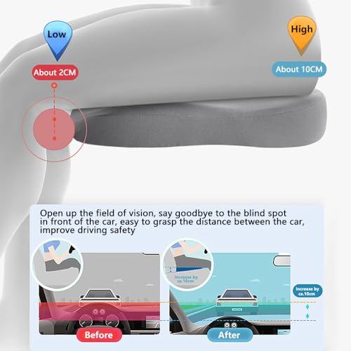 - 【Comfortable Car Seat Cushion】The car seat cushion adopt breathable fabric, polymer memory foam and non-slip silicone gel, can effectively provides comfort for those who sit or drive for long periods of time. And this car seat cushion with right thickness helps you to reduce the pressure on the coccyx., 【Ergonomics Design】Long-term driving is prone to back or leg pain, our car seat cushion unique ergonomics and orthopedic design help relieve sciatica, pelvis, cheekbones or tailbone pain when driving; Effectively reduce leg pain, fatigue and numbness, making your driving more comfortable., 【Better Driving Visibility】Car seat cushion is about 10cm/3.93 inches thick, which helps drivers whose seats cannot be placed in the ideal position for better visibility and more safety when driving., 【Easy to Remove & Wash】The wedge car seat cushion is designed with a removable zipper cover, so you can very easily take it off for cleaning. The durable fabric can be hand washed or machine washed and it can be reused. It does not fade easily and it still gives you the best support when you wash it many times., 【Wide Application】The memory foam car seat cushion is very versatile which is perfect for the most of car seats. Meanwhile, it also can be used with office chairs, home chairs and any other types of chairs. It's lightweight so that you can take it to your office or home easily.