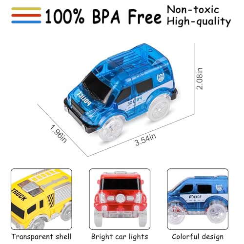 Augweyang 3 Pack Track Cars Replacement, Light Up Magic Cars with 5 Flashing LED Lights, Compatible with Most Tracks, For Kids Boys and Girls