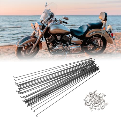 - Material: Stainless Steel; Color: Black; Spoke Size: 276 x 2 mm / 10.87 x 0.08 inch (LxW); Brass Nipples Size: 12 x 6 mm / 0.47 x 0.24 inch (LxW); Brass Nipples Aperture: 2 mm / 0.08 inch; Packing List: 36 Pcs x 14G Bicycle Spokes & Brass Nipple, Stainless Steel Spoke & Brass Nipples - The spokes are made of stainless steel, which is durable, strong, and tough. The spoke threads are smooth and burr-free, not easy to rust, have good impact resistance, and can adapt to complex road conditions., J-bend Lightweight Design - The spokes are made of J-shaped bends at the head, which are round and textured. 14G spokes can reduce the wheel's weight, effectively improve the balance and stability of the wheel, and improve riding efficiency and comfort., Instruction - Remove the old spokes from the wheel, and measure the distance from the inner wall of the elbow to the top of the other end to select the length of the spokes., Application - Spokes are the wheel's components that support the rim and transmit rotational power to the axle. Stainless steel spokes are suitable for various types of city bicycles, mountain bikes, road bikes, folding bicycles, wheelchairs, motorcycle wheels, etc.