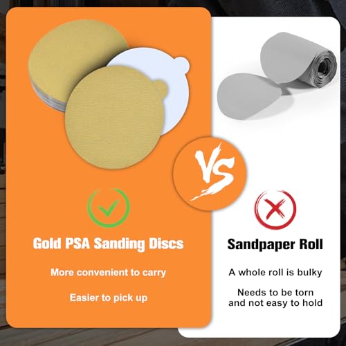 - 【WHAT YOU GET】Boxed of 6 inch 50 pieces PSA Sanding Disc, 180 grits, 【MATERIAL】High quality aluminium oxide material with higher cutting efficiency and wear resistance than silicon carbide. Delivers a fast, exceptionally long-lasting sharp cut with a consistent scratch pattern. It has maximum resistance to clogging and loading, increasing your productivity and reducing material consumption., 【DESIGN】Sandpaper discs that have an easy-to-pull tab for peeling off the backing layer that protects the discs PSA pressure-sensitive adhesive from getting contaminated., 【STRONG ADHESION】The strong sticky adhesive backing design enables the discs to be quickly and securely attached to a DA sanders PSA backing plate. Effectively enhances the bonding with the sandpaper disc, ensuring that sandpaper discs are tightly adhered to keep them stable even at high speeds and high workloads, enabling you to perform grinding and polishing tasks in a more efficient and continuous manner., 【APPLICATION】Suitable for use in auto body and paint shops, woodworking and wood furniture making, metalworking, crafting, household tasks, drywall projects, industrial applications, fiberglass work, plastics, or any other surface that requires precise sanding.