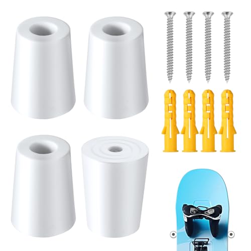 - Product Included: You can get 4 pieces of vertical ski hangers with 4 pieces of screws and 4 pieces of expansion anchors in a pack. Each vertical ski hanger measures about 0.94x0.75x1.22in/2.4x1.9x3.1cm, compact size that won't take up much wall room., Reliable Material: The ski wall mount holders are made of good-quality PVC material, not easy to break or deform, heavy-duty and sturdy. The screws are made of nice metal, solid and strong. The expansion anchors are made of premium plastic material, durable and reliable., Simple Design: Adopting minimalist design, the shape of vertical wall mount ski rack looks like wine cork, which is simple and compact. Its simple and beautiful design fits any space., How to Install: First, measure the edge of the board (the tapered waist of the board) and mark the location. Second, install the wall mount snowboard racks with the included expansion anchors and screws. You can use three or four snowboard racks to hang up your ski., Wide Application: Our vertical ski storage can be applied to hang up your snowboards and ski boards, allowing you to make full use of room. It is also a good gift for your family members or friends who love skiing. No one will refuse such a compact and practical gift.
