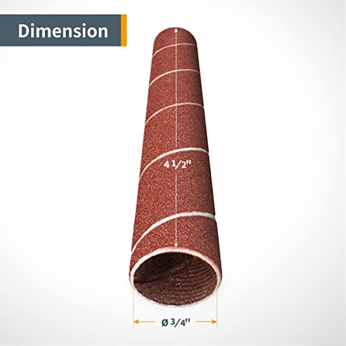 - INCLUDES: Professional grade aluminum oxide (120 grit) sanding sleeves 4-1/2” x 3/4” Diameter – Pack of 6, SIZE: These 4 ½ inch long spindle sander sleeves fit directly over the rubber sanding drum metal shaft, PROFESSIONAL FINISH: Perfect oscillating sanders for woodworking projects, and used for sanding, resurfacing, abrading and polishing some metals and most soft and hard woods, MADE TO LAST: Constructed from aluminum oxide to increase longevity and prevent loading, COMPATIBILITY: Works with oscillating spindle sanders, including models from POWERTEC (item# OS1400, OS1000), Delta, Grizzly, Jet, Ryobi, and Wen
