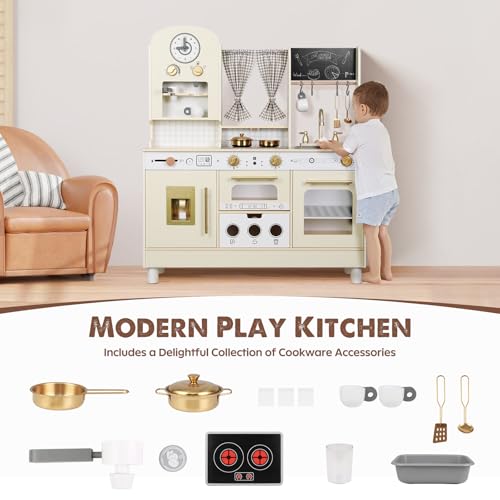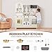EDUBEBO Kids Kitchen playset, Wooden Play Kitchen, Height Adjustable, Comes with Various Kitchen Accessories, Ideal Role Play Toy Gift for Toddlers and Kids Ages 3-8 (White)