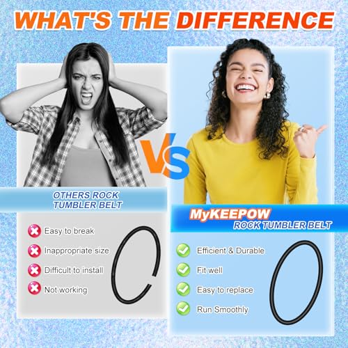 - 【Compatibility】Tumbler belts compatible with komestone rock tumbler K1, K1 Pro, and K3. (Note: NOT compatible with K2 Elite Rock Tumbler), 【High Material】The rock tumbler belts for komestone is made of high quality rubber, durable and flexible, long lasting reliability, can keep your rock tumbler kit working in prime condition, 【Replace Regularly】Replace your rubber belts for komestone rock tumbler K1, K1 Pro, and K3 models when it is loose or broken, ensure your machine rotating performance, 【Easy to install】It is Simply remove the broken belt from your rock tumbler head and replace this new one in the original position, reactivate your vacuum cleaner, 【What You Get】 6* Replacement for Komestone rock tumber, you can quickly replace it and get your machine working again when the belts break, If you have any questions please contact us anytime
