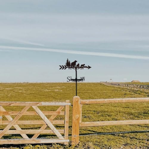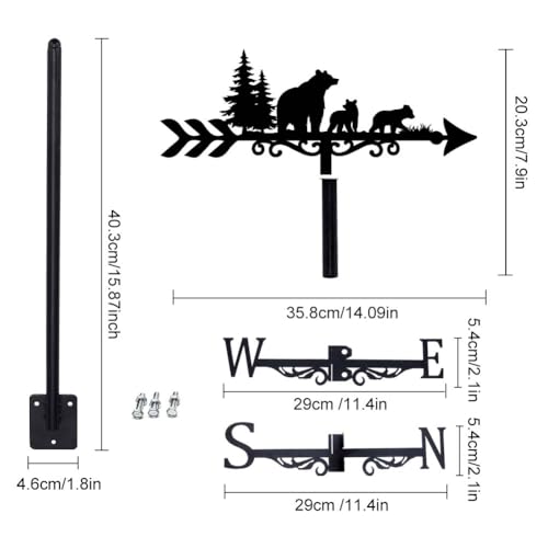 - Metal Wind Vane: We designed this weathervane with bear theme, a bear family of three bears walking in the forest, so cute! This wind vane can not only be used to guide direction, but also as a decoration., Garden Weather Vendor Size: The cute bear garden decor is medium sized, measuring approximately 35.8x20.3cm/14.09x7.9inch. The pointer has a tapered end for balance and to catch light winds., Easy to Use: Easily install the garden stake in the ground, within minutes with the garden stake provided.The step-on stake needs to be tightly fitted into and perpendicular vertical to the ground in order to provide a steady anchor., Exquisite Outdoor Decoration: Unique weathervane is suitable for home and garden decoration, also a great ornament for yard decoration. Ideal decoration for garden homes, garden sheds, fences, pergolas, greenhouse barns or gazebos., Great Gift: Suitable for home and garden decor, this weathervane is a great accent for outdoor decor! Perfect for holidays, birthdays as a gift for your friends and family.