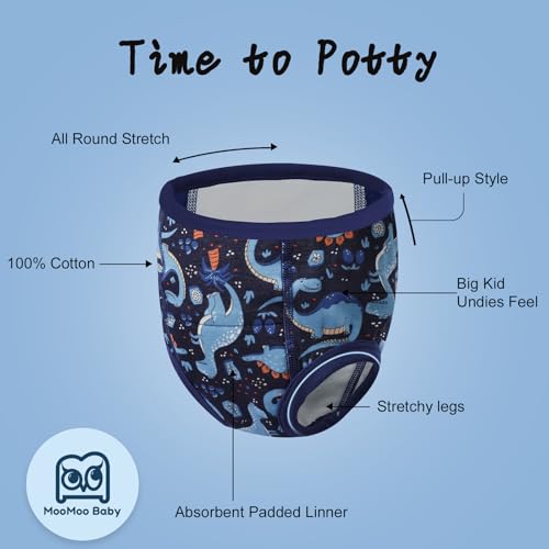 MooMoo Baby Toddler Training Pants 8‑Pack – Soft Cotton Reusable Potty Training Underwear, Padded Layers, Elastic Waist, Blue 5T