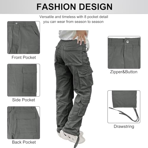SDNGED Cargo Pants for Women High Waisted Casual Pants Baggy Y2k Straight Wide Leg Pants with Pockets Streetwear, Dark Grey, Large