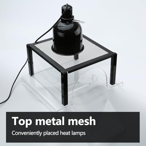 - Large Space:The Turtle Topper is essentially a large basking platform that safely mounts above tanks, giving your pet a place to dry off, to get warmed up, or just to hang out. This extra space provides a healthier and roomier aquatic environment for your pet. The Turtle Topper is designed for standard sized tanks up to 55 gallon ( 40 gallon breeder not included) and 10“-13.5” wide including 10, 20, 29, 55, Easy Climbing: The ramp is designed with steps, which makes it easier for pets to reach the platform. The distance between the ramp and both sides is 3 inches, and it extends inwards, which can effectively prevent escape, Convenient and Spacious: The platform is made of fully transparent acrylic and metal, which allows light to pass through and can be moved left and right to avoid water pipes, filters and other accessories. The metal mesh on the top can directly place heat lamps without the need to a stand.It is fixed with four pillars, which is more durable and strong, Quick Assembly: To ensure transportation safety, our products need to be assembled, and the assembly time is less than 10 minutes; the acrylic part has double-sided protective film, if you want it to be fully transparent, please remove them, if some directions do not need to be transparent, please remove the protective film close to the pet, The Perfect Gift: a great gift for red eared sliders, painted turtles and other pets that need to bask in the sun