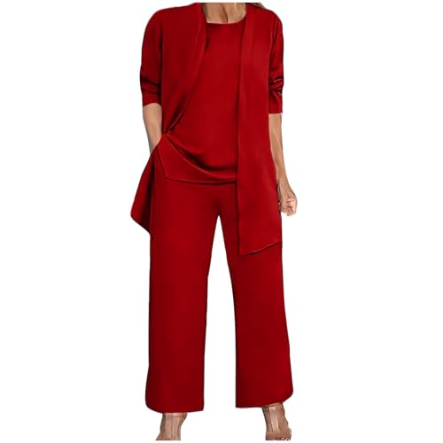 SACFOF Womens Trendy Lounge Set 3 Piece Outfits Cardigan Sleeveless Tank Top Wide Leg Pants Casual Sweatsuit Sets, Red, X-Large