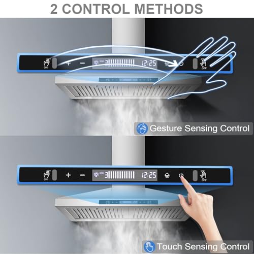 - 【Range Hood 30 inch】30" wide,the common hood vents for kitchen that match various stoves.Made of high quality stainless steel brushed finish,the kitchen range hood is smooth and durable,easy for cleaning after each cooking, 【Wall Mount Range Hood】A chimney-style wall mount range hood,two chimneys are adjustable from 22.6" to 36.3",fits for 7.5-8.5 Ft. ceilings.Chimney extension for optional(Part # TD08-EXT, Sold Separately),can replace the original upper chimney of stove hood,to match 9-10-Ft. ceilings, 【Ducted/Ductless Range Hood】The kitchen exhaust hood comes with aluminum exhaust pipe,for connecting the 6" top vent and the external air outlet,to make the stove hood vent in ducted mode. Change it to be a ductless range hood by installing a set of carbon filters(Part #CF-Y,NOT included,need to purchase separately), 【2 Control Methods】With 2 control modes, including soft touch and intelligent gesture sensing control,can easily switch the function of stove hood as your needs during cooking,bring you a more pleasant and convenient operating experience, 【3-Speed Fan & Delay Shut Off】This wall mount kitchen hood has Max. 450 CFM with 3-speed fan,can meet daily cooking needs such as steaming, stewing, stir frying, etc.Also with off delay function,effectively remove remaining fumes and odors to keep air fresh.Electrical parameters of this kitchen hood:110-120V/60Hz,3-prong plug