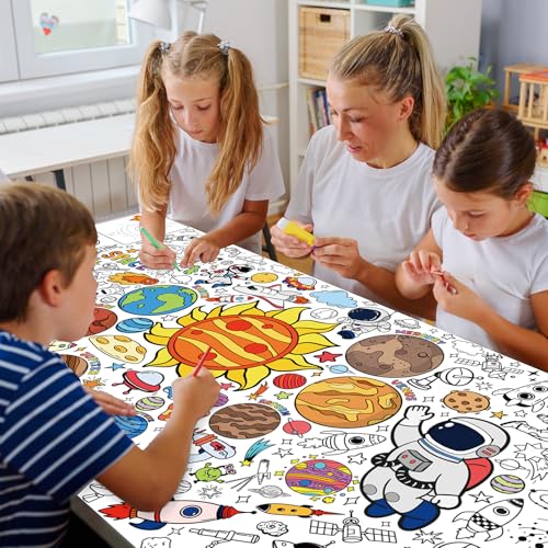 Outer Space Coloring Poster for Kids - 35.5 x 72 Inch Giant Space Activity Coloring Tablecloth for Classroom Party Supplies, Astronaut Solar System Large Poster for Kids Birthday Party Decor