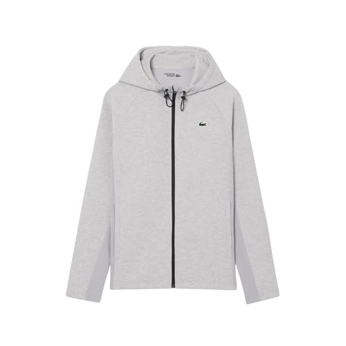 Lacoste Men's Breathable Sport Track Jacket, Silver Chine/Elephant Grey, Medium