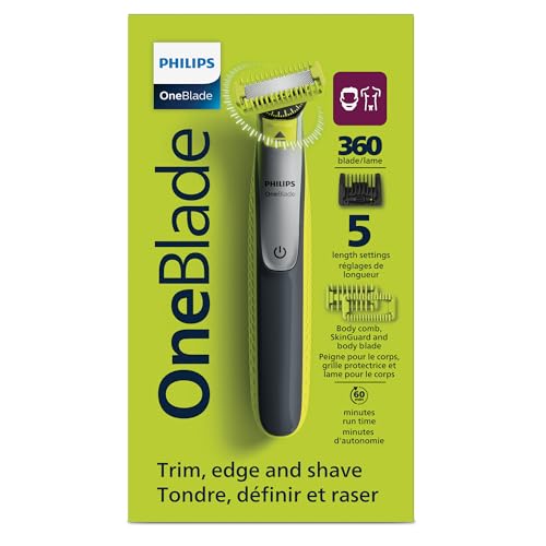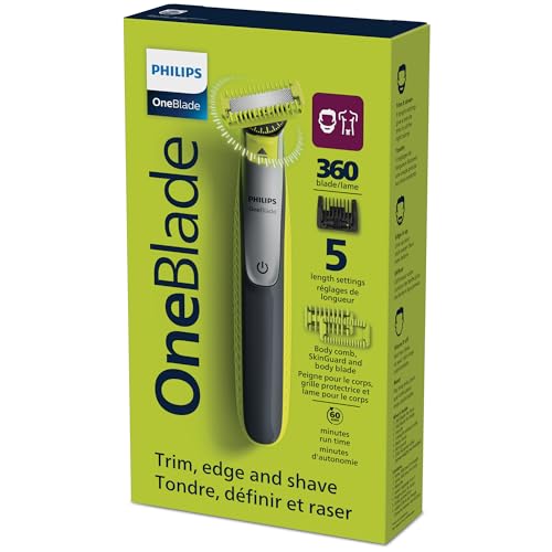 - Philips OneBlade has a revolutionary technology designed for facial grooming. It can shave any length of hair. Its dual protection system – a glide coating combined with rounded tips – makes shaving easier and comfortable. Its shaving technology features a fast-moving cutter (12000x per min) so it's efficient - even on longer hairs., Create precise edges with the dual-sided blade. You can shave in either direction to get great visibility and see every hair that you're cutting. Line up your style in seconds!, Attach the skin guard for an extra layer of protection on sensitive areas., The innovative 360 Blade can flex in all directions to adjust to the curves of your face. The design enables constant skin contact and control. Easily trim and shave hard‐to‐reach areas — with few strokes and great comfort., OneBlade does not shave as close as a traditional blade - so your skin stays comfortable. Go against the grain and shave off any length of hair easily on your face or body. Includes two blades - one for face, and one for body.