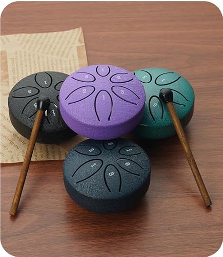 Jahreszeit Steel Tongue Drum 6 Notes 3 Inches - Malachite Percussion Instruments Handpan Tank Drum - with Travel Bag, Mallets, and Song Book for Musicians