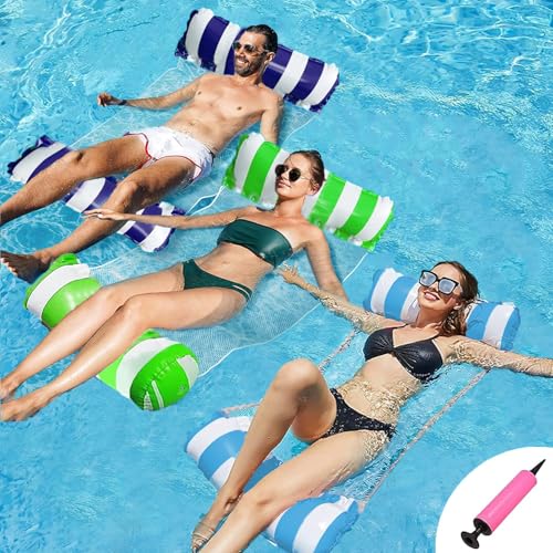 3 Pack Pool Float Water Hammock,Inflatable Swimming Pool Float Hammock for Adults, 4-in-1Multi-Purpose Water Floating Chair Bed Raft Recliner Float Lounger Float Hammock with Infloator Pump
