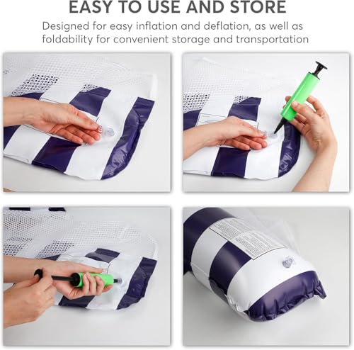 - 【High Quality Material】:The Pool Float Hammock 2 pack uses thick and durable high-quality raft-grade PVC material with a soft matte appearance. The material is durable, anti-pollution, environmentally friendly. The hammock head rest and footrest provide plenty of support and an abundance of comfort., 【Summer Best Choice】:In the hot summer, water hammock floating bed is the best gifts for playing water with partner, family and friends. Bring your family and friends and lying or sitting, chatting and sleeping together! Unique Design Water Hammock, this Single Person Capacity Pool Floats ergonomic design provides plenty of support and an abundance of comfort.You could put your floating bed on the water, bask in the sunshine, enjoy and relax., 【4 In 1 Water Hammock】:The 4-in-1 design can be converted into a floating hammock, lounge chair, Drifter, and exercise saddle . Therefore, you can change your posture on the water hammock as needed. The floating hammock is ideal for a series of recreational and leisure activities such as chatting resting reading in the water.Note: After use, do not soak the float in the water for a long time. The float should be wiped dry and put in the storage bag so that the product can be used longer., 【Easy to Carry and Easy to Store】:Pool Floats and Loungers inflatable hammock system measuring,Durable, waterproof, easy to clean, tear-resistant, lightweight and easy to travel.NOTE:Recommended age: 15 years old and above, maximum load: 220 lbs, children need to be used under the supervision of an adult., 【Quality Service】:If you have any question regarding the products, please contact us or let us know how we may assist you to resolve the issue you have experienced.Included: Water hammock *2,Inflater hand air pump*1.