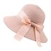 PESAAT Women Summer Straw Hat Bowknot Beach Caps Wide Brim Foldable Sun Hats (Pink Bow, Adult)