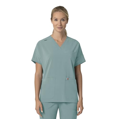 Carhartt Scrubs C13110 Women's Force® Cross-Flex Modern Fit Oversized V, Summer Blue, Small