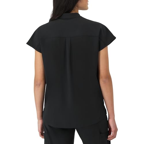 Hanes Women's Healthcare Top with Mandarin Collar, Moisture-Wicking Stretch Scrub Shirt, New Ebony, X-Large