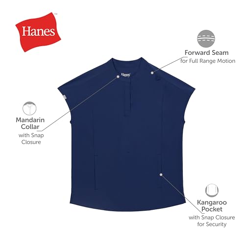 - HANES COMFORT FIT SCRUBS - Made for those who make a difference. Medical scrubs are appropriate for use in healthcare settings such as hospitals, doctor’s offices, and long-term care facilities., THE DETAILS - This far-from-basic scrub top features a mandarin collar, a badge holder at the chest, and a kangaroo pocket with snap closure for security., SMART DESIGN - Forward seams, elevated fabrics, and an excellent fit deliver high-performing mobility., STAY COOL - Cool Comfort fabric wicks moisture from the skin, so you'll stay cool and comfortable all day., FEEL FRESH - Antimicrobial technology for odor control attacks odor-producing bacteria, so you'll feel fresher., MADE TO LAST - Sturdy stretch fabric is designed for lasting wash and wear needs.