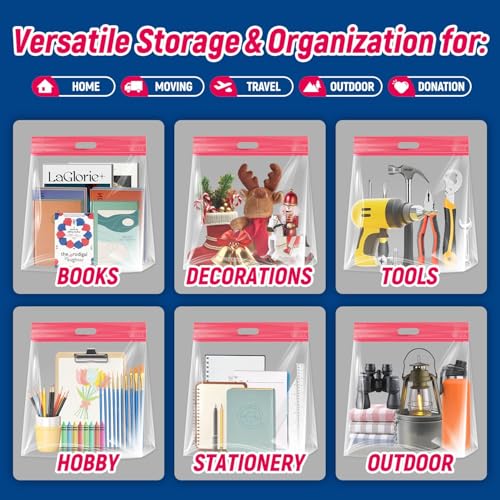 - Designed for Personalized, Flexible Organization Our resealable storage bags are crafted to cater to your unique and flexible storage needs. Whether you're organizing clothes, toys, seasonal decorations, or everyday essentials, these bags make it easy to keep everything in its place. Designed to help you maximize your space, these bags ensure that your belongings are neatly stored and easily accessible, creating a more organized and clutter-free environment., "{Advanced EASY CARRYN SEAL Technology for a Secure Closure} Each of our 5-pack, 3-gallon bags (16"" x 15.5""+5"") features innovative EASY CARRYN SEAL technology, with a strong, robust zipper that ensures a secure, leak-proof seal. Additionally, each bag has a writable area where you can label contents, dates, and other important details, allowing you to easily track and manage your items.", "{Versatile and High-Quality for Multiple Uses} Perfect for home organization, moving, travel, outdoor activities, or even donations, these high-quality storage bags are built to withstand a variety of storage needs. With their durable design, they provide reliable protection for all your items, ensuring they stay safe and organized, no matter the situation., "{Making Life Simpler, One Step at a Time} Our mission is simple: Easy your home, easy your life. By offering practical, efficient storage solutions, we help reduce clutter and hassle, making your home, office, or travel more organized. Our resealable bags are the perfect solution for anyone looking to simplify their storage and organization process while maintaining a tidy, efficient living space., {Various Sizes Available} We offer these bags in four sizes: 3-gallon, 5-gallon, 10-gallon, and 20-gallon, with options featuring handles and bottom. From home and office use to travel, our sealable bags are designed to meet all your daily needs.