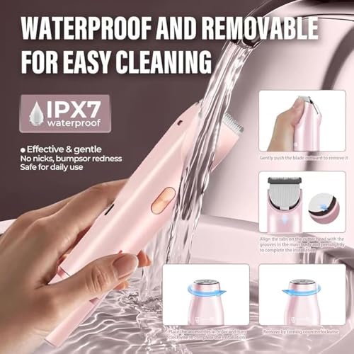 - 【Glow Aura Women's Shaver】: Electric women's shavers provide women with a painless and safe way to shave without worrying about pulling or cutting the skin., 【2-in-1 Dual Head Function】: The dual-head design can easily trim and shave, which is perfect for delicate areas such as bikini line, underarms and legs, meeting all your facial and body hair removal needs, 【IPX7 Waterproof Design】: Our glow shaver aura dual-head shaver has an Ipx7 waterproof rating and is safe for wet or dry use. Shave comfortably in the shower or bath, convenient and excellent performance in any environment., 【Premium Materials and Safety Technology】: Silky Glow shaver is made of ABS material, which can trim gently and minimize irritation to sensitive skin. It is perfect for sensitive areas such as bikini line and underarms, 【Portable Design】: The shaver head can be easily removed and rinsed under running water, and the 400mah Type-C rechargeable battery can be used wirelessly for a long time. Enjoy the convenience of fewer battery changes and sustainable trimming, whether at home or on the go, The Bikini shavers are suitable for full body hair trimmers, such as legs, arms, armpits, bikini lines, and curvy areas.
