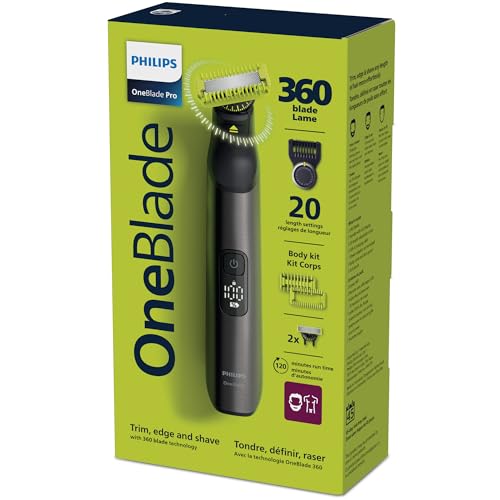- Philips OneBlade has a revolutionary technology designed for facial grooming. It can shave any length of hair. Its dual protection system a glide coating combined with rounded tips makes shaving easier and comfortable. Its shaving technology features a fast-moving cutter (12000x per min) so it's efficient - even on longer hairs., The versatile precision trimming comb offers length settings from 0.4 to 10 mm, giving you an even trim at exactly the length you want., OneBlade follows the contours of your face, allowing you to easily and comfortably shave all areas. Use the dual-sided blade to style your edges and create clean lines by moving the blade in any direction., Innovative 360 Blade moves in all directions and adjusts to every curve of your face to maintain constant skin contact, while enabling control at all times. Easily trim & shave, even the most difficult to reach areas with fewer passes and greater comfort*, Trim your beard to an even length with the included adjustable precision comb. Dial up one of the 20 lock-in length settings to get everything from a 5 o'clock shadow, to a tight trim, to a longer beard style.