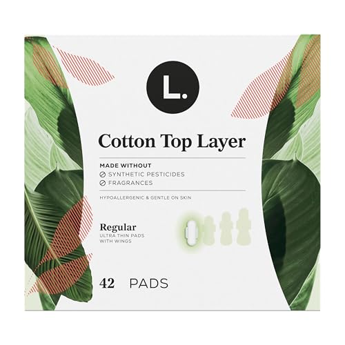 L. Ultra Thin Pads for Women, Regular Absorbency, Breathable Cotton Top Layer, Unscented Menstrual Pads with Wings, 42 Count