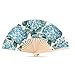 Abbott Collection Hydrangea Folding Hand Fan - Wood/Cotton, Blue/Green (16"W)