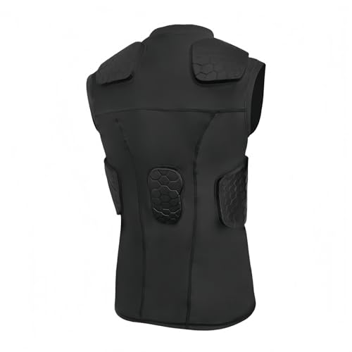 - 6 Thick EVA Pads Design: Football padded compression shirts engineered with strategically placed 6 padding on the chest, ribs, shoulders, and back, providing protection during high-impact sports and activities such as the impact from the balls, pitches or hard hits, make you more safe while compete, Breathable and Sweat Wicking Fabric: Baseball chest protection undershirts made with soft and skin-friendly material can absorb moisture and keep you cool when doing action sport, Snug Fit and Tank Top Cut: Goal catcher’s shirt with sleeveless design offers maximum range of motion, while the 4 way stretch fabric with compression fit supports muscles, reduces fatigue, and improves blood circulation for enhanced performance, Multi-Use Application: Sports shock rash guard compression padded vest is perfect for football, basketball, rugby, hockey, baseball, softball, lacrosse, goalkeeper, handball, pitching, paintball, tball, soccer, martial arts, and other high-contact sports. Also impact protection vest is ideal for intense gym workouts, obstacle races, and outdoor adventures, Wearing Instruction: Sports protective shirt can be used on the game or just for training. Adult can wear softball sternum guard tank tops either inside or outside, can acts as a base layer under the sports uniform