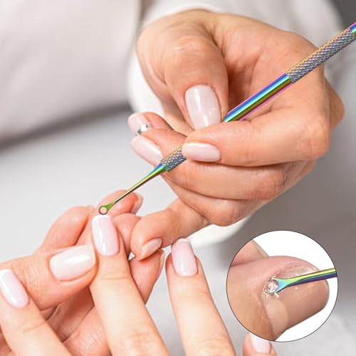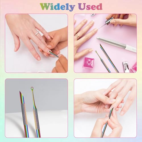 - 【Features】This cuticle pusher tool product is carefully designed by professional designers with rich survey experience. The shape, size and weight of our nail tools are completely ergonomic, which can help to make nail art efficiently. This nail tool adopts a double-headed design, which not only improves efficiency but also facilitates storage. Our products can meet users' needs for tool appearance and portability. Even nail art beginners can easily get started., 【Premium Material】Our cuticle remover products are made of stainless steel with a long service life and are manufactured in a modern, high-tech factory. This nail tool is of guaranteed quality and can be used repeatedly for a long time. Our nail tool has a non-slip handle and a dual-head design to meet your needs. Our nail poking needle will give you a great experience. And it is easy to clean without too many tedious processes., 【Easy To Use】Our cuticle pusher tools are easy to use, but make sure your nails are clean before use. During use, you need to use the tool head to gently scrape or shovel away the softened cuticle along the edge of the nail and the surrounding skin. After use, be sure to clean your hands or feet, and then apply hand cream, nail polish, etc. for care to keep your skin and nails healthy. Its use can make your manicure more perfect and exquisite., 【Wide Applications】This nail art product is widely used by people and has a good reputation in the market. Our high-end and novel design can help you remove dead nail skin efficiently and ensure that your nails are not damaged. It is suitable for nail art enthusiasts who like to do their own manicures at home. Through the flower needle, you can be creative and make exclusive nail art. It is also suitable for professional manicurists and DIY enthusiasts., 【What You Will Get】You will receive a nail art flower pin with colorful metallic luster, with a pink leather storage case, and accessories such as green and white nail art stickers for your use. Enough for your use.If you have any questions about our nail cuticle pusher product during using nail cuticle remover, please tell us and we will solve the problem for you as soon as possible.We sincerely hope to bring you a pleasant experience.