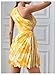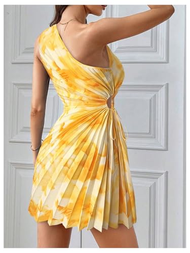 MakeMeChic Women's Summer Dress 2026 Tie Dye One Shoulder Mini Dress Pleated Cut Out Wedding Guest Dresses, Yellow, X-Small