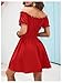 Floerns Women's Off Shoulder Puff Sleeve A Line Dresses Frill Trim Milkmaid Dress, Red, Large