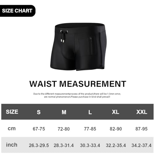 - These men’s swim trunks feature a secure zippered pocket to safely carry keys, cash, or small essentials, perfect for swimming, surfing, or beach activities., Crafted with quick-dry swim fabrication, these swimming trunks for men wick away moisture instantly, keeping you cool and dry for maximum comfort in and out of the water., Designed for a snug fit, these men’s swim briefs boast an elastic waistband with drawstring for customizable comfort and unrestricted movement during swimming., Ideal as men’s swim shorts, they’re tailored for swimming, diving, surfing, beach lounging, yacht parties, or poolside fun—your go-to for summer adventures., Check our detailed sizing chart for these men’s bathing suits before purchase. If you have muscular thighs or prefer a looser fit, consider sizing up.