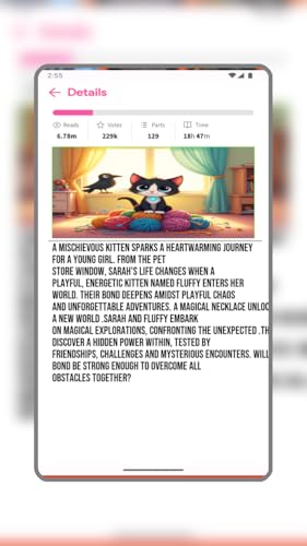 - Enjoy engaging interactive stories with Fluffy the kitten., Listen to charming audio stories about kittens and their adventures., Save and share your favorite children's stories featuring Fluffy., Read offline stories about kittens and their magical world., Track your progress through the heartwarming story of Sarah and Fluffy.