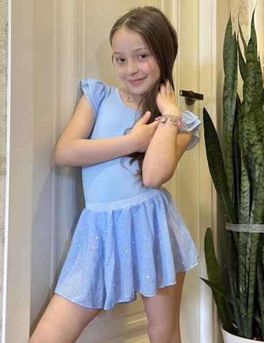- Ballet Leotard Set: The 2 piece ballet outfits for girls includes a ruffle sleeve leotard and a shiny dance skirt. The skirt is separated from the leotard and can be flexibly matched to experience more styles, Fabric: Dance leotard for girls is mainly made of high-quality and durable cotton material, soft, comfortable and stretchy, holds up well after repeated washes, maintaining its shape and color without fading or stretching out, Elegant Design: Girls dance leotards feature sequined ruffle sleeves and crisscross back design, adding a cute and feminine look; High-low hem provides enough coverage, sparkles on the ballet skirt glow like a princess as she twirls, Occasions: Girls ballet leotard with removable skirt is perfect for dance, ballet classes, cheer leading, training, gymnastics, stage perform, party and dress up. It also can be a good choice for girls' back to school outfits, Note: Dance outfits for girls are available in 2-9 years, we advise to measure your kids' size and corresponding to our size chart before ordering. Recommended to hand wash or washing it inside a mesh laundry bag and hang dry