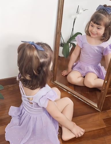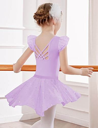 Zaclotre Ballet Leotards for Girls Toddler Ruffle Sleeve Crisscross Back Dance Dress Outfit with Removable Skirt Combo Lilac