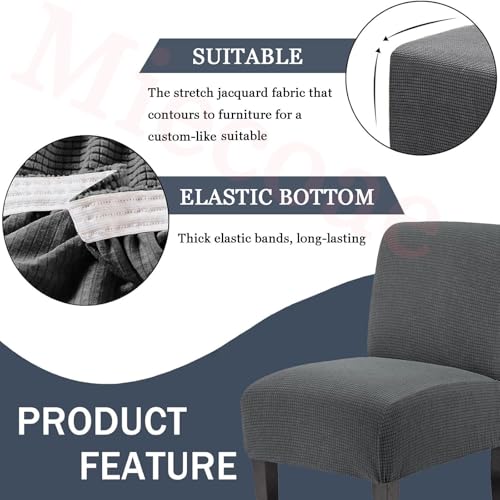 - COMFORTABLE FABRIC:Armless Accent Chair Protect cover are made from knitted jacquard fabric, which is breathable, thick and soft, GOOD ELASTICITY: Chair Covers Stretchable Constructed With Thick Elastic Bands To Cover The Bottom Edges Well For A Full Protection, Keep Staying In Place Firmly, SUITABLE SIZE:Chair back width 20-24 inch 51-56 cm;Total tall of chair back 21.6-25.6 inch 55-65 cm;Backrest tall 13.7-15.7 inch 35-40 cm;Seat length 21.6-29.5 inch 55-75 cm;Seat depth 18-23.6 inch 46-60 cm;Seat tall 7-11.8 inch 15-30 cm.The stretch armless chair slipcovers are suitable for most accent chairs., EASY CARE:The Accent Chair Slipper Cover can not only protect your chair from scratches or tears, but also Chair to protect from cats,easy to clean; Machine washable in cold water for easy care; Do not bleach or iron.it's very easy to install and disassemble., APPLICABLE SCENARIOS:Accent Chairs Slip Covers Without Arms for Living Room Dining Chairs Hotel Chair t cushion