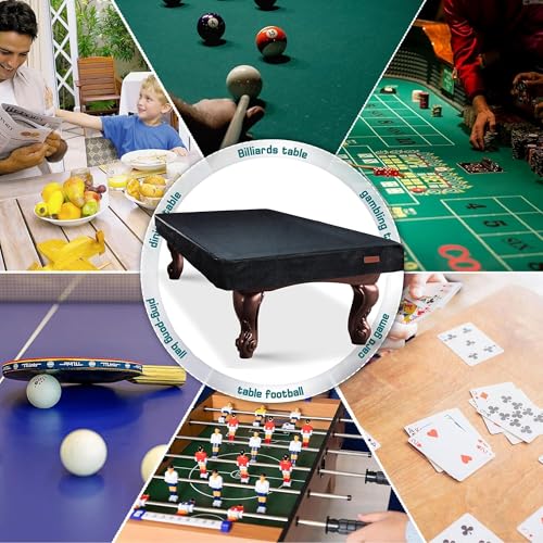 - FITTED SIZE: The size of the fitted table cover for 8 foot table is 100"L×56"W (Edge to Edge). Please be sure to measure your pool table before purchasing the cover. If you're stuck in between sizes or aren't sure which size to buy, we recommend that you choose to go one size up. It also works well for other types of gaming tables., MATERIAL & WORKMANSHIP: Heavy duty leatherette pool table covers with weighted corners and machine sewn seams for adding durability. Hight density cotton-fleece backing will keep the cover itself from marking the table. In addition, easy to cover, fold up and store as they are used., ALL-ROUND PROTECTION: The covers will provide all-round protection for your table, whether indoors or out. they are pet-proof, dust-proof, water-proof, anti-petodor, wear-proof, tear resistant, the smell won't stay on them, and wrinkles from folding the cover will not take a long time to flatten out naturally due to the high quality fabric., LUXURY STYLE: Available in several colors to perfectly match your home style, made with highly realistic leather texture to make your room look more luxurious., ORDER WITH GRACE: K-Musculo's swift return or exchange policy enables you to purchase without hesitation 100% satisfaction guaranteed. Our care doesn't end when your product arrives at your door. If you have any question with our pool table cover, please message us for fast service!