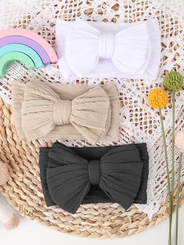 BQUBO Handmade Baby Headbands Soft & Stretchy Hair Bands with Bows Nylon Bows Hairbands for Girls Newborn Infant Toddlers Hair Accessories 3 pack
