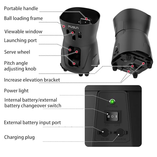 - Portable & Easy to Use The PUSUN PT Mini Pro Tennis Ball Machine is lightweight and easy to carry. Perfect for beginners and personal training, it helps improve your game with consistent and accurate ball feeds. Set it up anywhere and start practicing in minutes!, Adjustable Speed, Frequency & Angle Customize your training with adjustable ball speed (8-60 km/h), serve frequency (1.8-8s), and angle (25-60°). Whether you’re working on footwork or stroke technique, this Tennis Ball Machine adapts to your needs., Long Battery Life for Extended Practice Powered by a built-in lithium battery, it runs for 3-5 hours on a full charge. No need to worry about stopping mid-session—just focus on your game and get the most out of your training., APP & Remote Control for Easy Operation Easily adjust settings with the mobile app or remote control. Change ball speed, frequency, and angle with just a tap, so you can train without interruptions., Large Ball Capacity & Durable Build With a 65+ ball capacity, you’ll spend more time hitting and less time refilling. Made from high-quality ABS and metal, this machine is built to last—perfect for home, club, and school training.